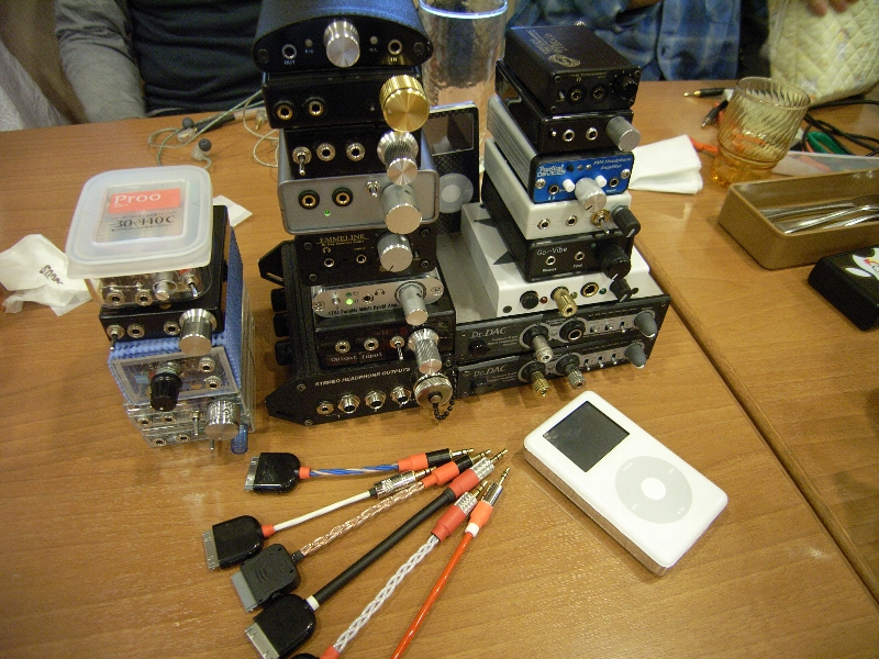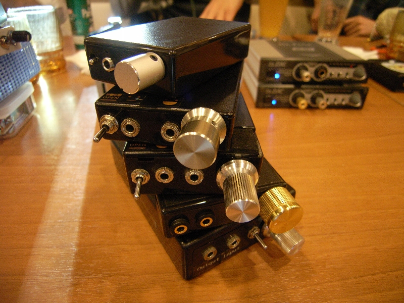 店員やお客さんの痛々しい視線を跳ね除け、試聴&雑談を4時間くらい?行いました。人数が多かったので、全てのヘッドホンアンプをじっくり聴くことはできませんでしたが、人様のものや、市販品のものを聴く機会はさほどないので、非常に有意義な時間でした。参加してくれた皆さん本当にありがとうございました。