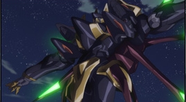 まぁ、新型戦艦で採用されたフロートシステムを、ナイトメアフレームに採用したということですが、何故かバックアップの燃料も持っていかずに、帰りを考えない急襲作戦。その頼みの綱のフロートシステムはあっさりと壊されてしまいます(急襲作戦だししょうがないけど)。しかも、空を飛んだおかげでエネルギー切れになることに。相手が対艦装備を保有している時点で、かなり守りが堅いことも分かりそうな物ですが。。。。。